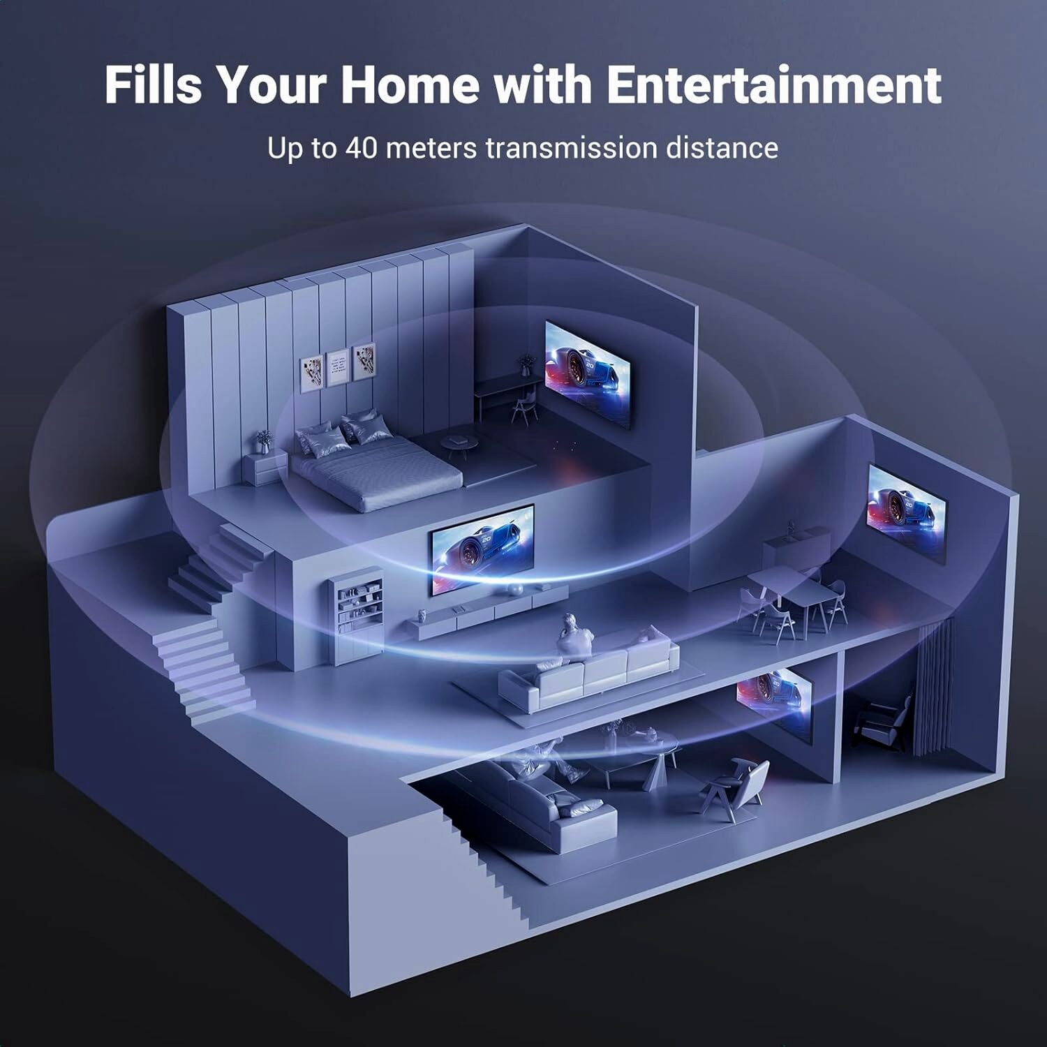 - Up to 40m at 1080p (with HDMI cable)